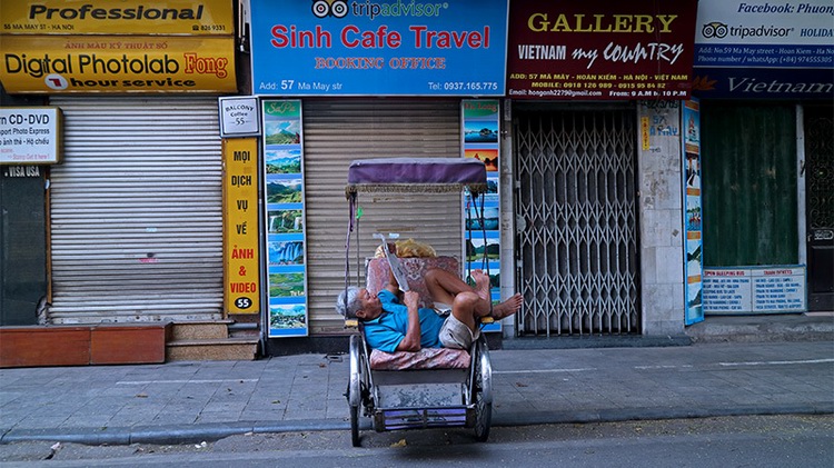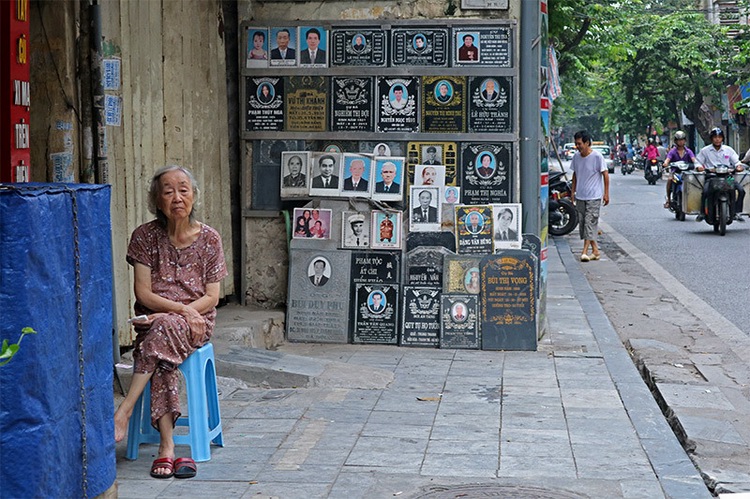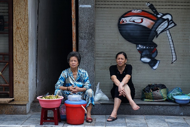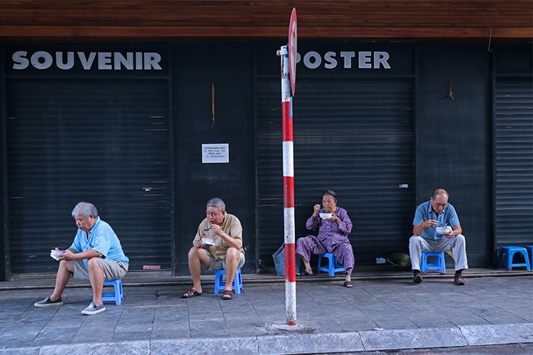 Early breakfast on the pavement of Hoan Kiem street.