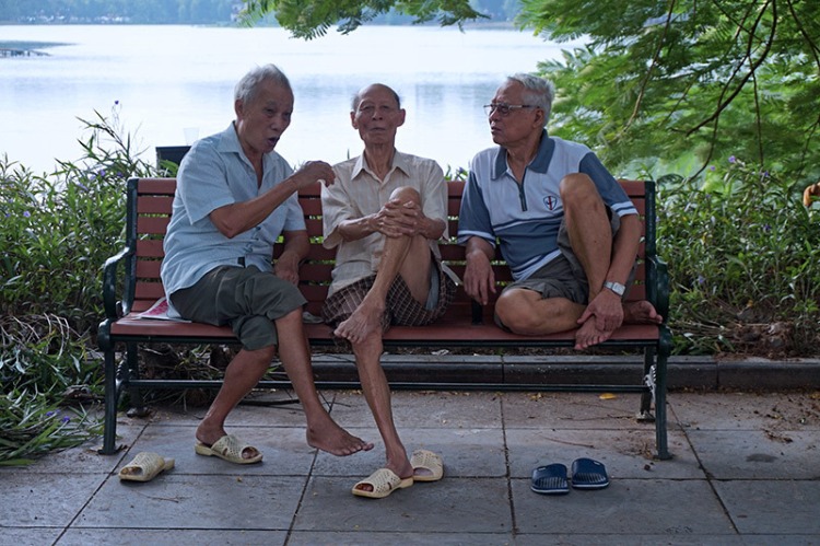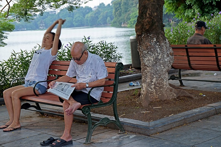 Many old people in Hanoi still keep the habit of updating the news from the